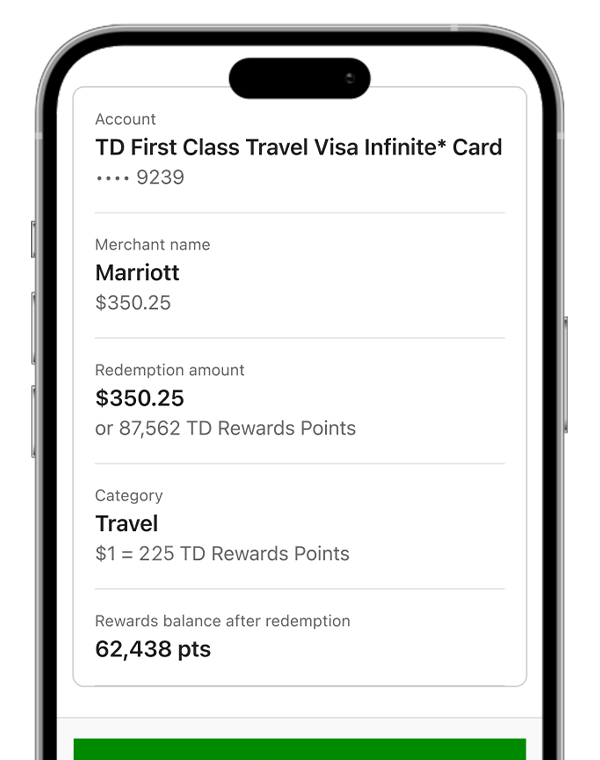 When you select an Eligible Purchase1 for redemption, the TD Rewards Points required will be displayed.