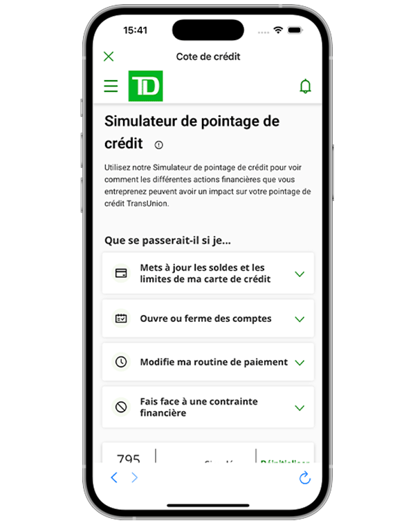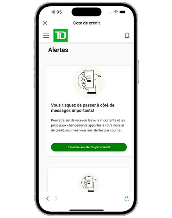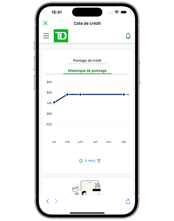 Vérifiez votre cote de crédit gratuitement1 avec le Tableau de bord CreditViewMD de TransUnion dans l’appli TD.