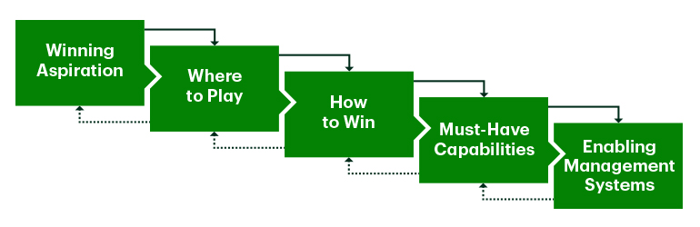 To provide some context, one of our favorite frameworks for thinking about strategy comes from "Playing to Win: How Strategy Really Works", by A.G. Lafley and Roger Martin3, which lays out a series of decisions an organization must make to create and execute a winning strategy.