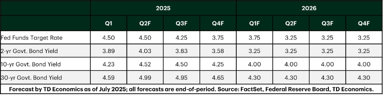 TD Economics Key Financial Forecasts