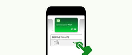 Automatically add your TD Bank Visa card to your digital wallet in a few simple taps.